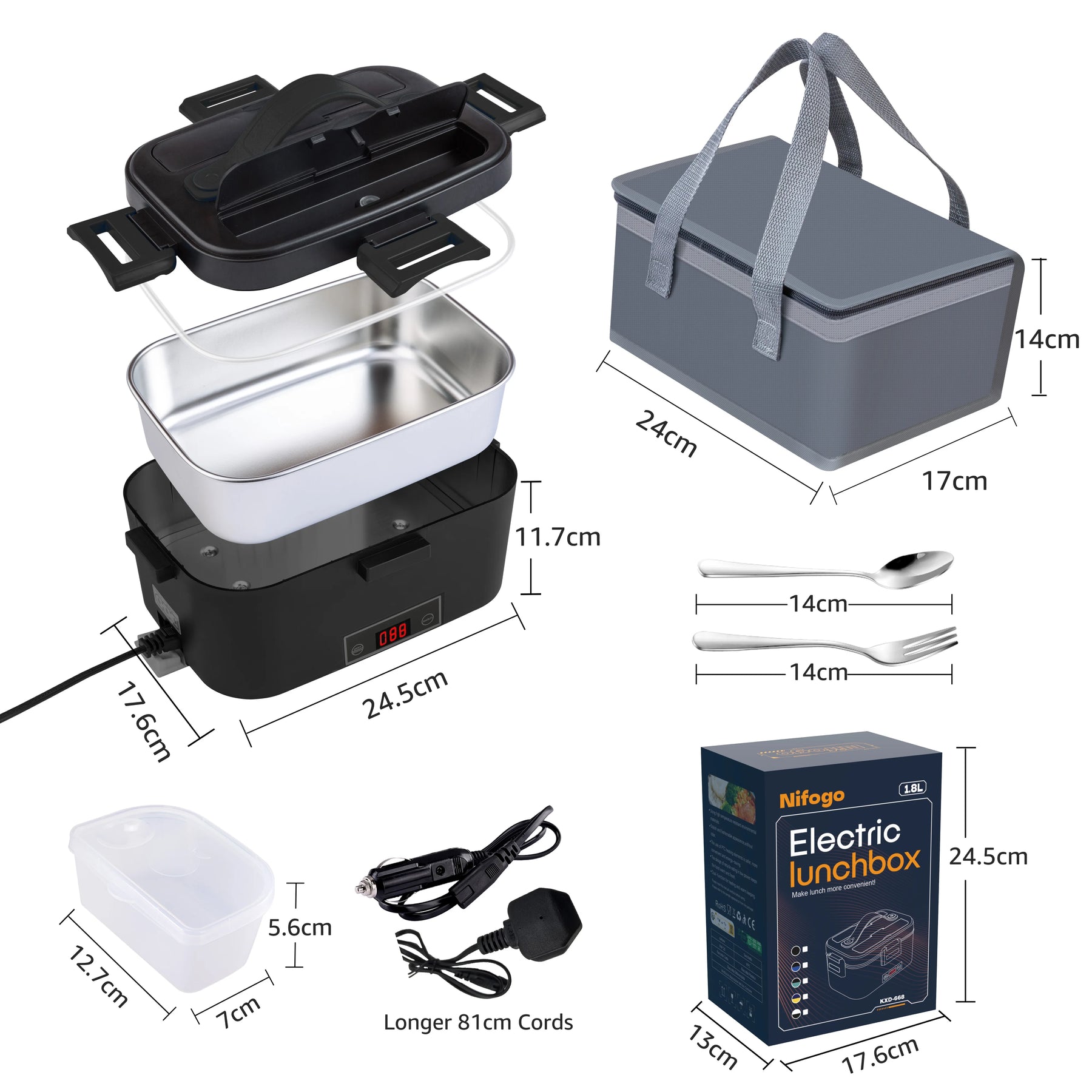 Meet the ultimate portable food warmer designed for life on the move. With 80W of heating power and multi-voltage compatibility (12V/24V/230V), this 1.8L electric lunch box is your perfect companion whether you're driving a car, operating a truck, or working at the office.